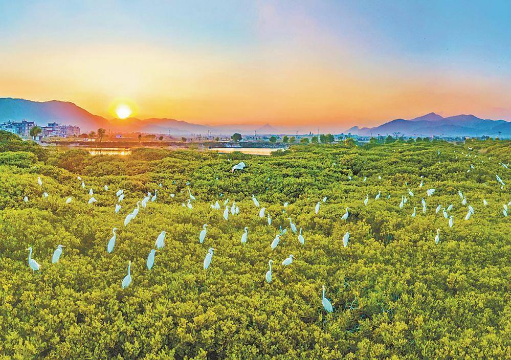 云霄县漳江口红树林国家级自然保护区内,鹭鸟云集在红树林枝头。(资料图片)