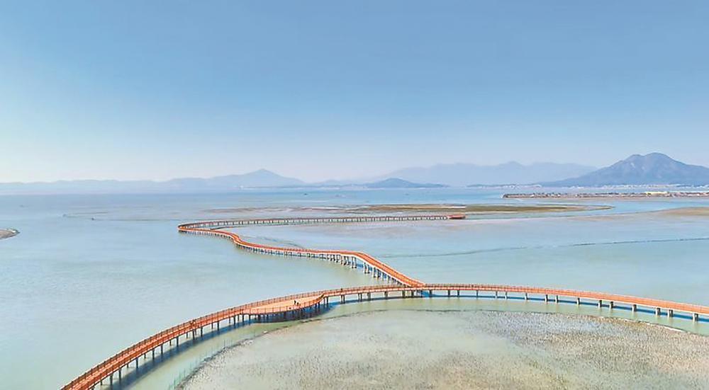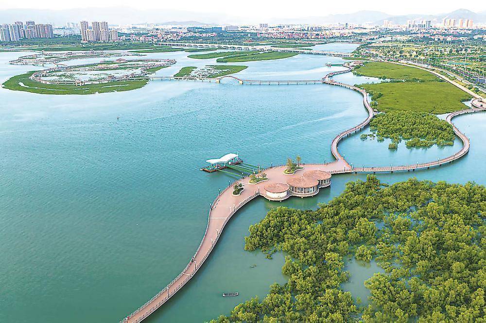 r这一技术应用,提高了红树林存活的稳定性,且为众多生物提供更丰富的栖息、觅食和繁殖场所。在高处俯瞰鳌冠湾,但见青枝拂浪,鱼虾穿梭,海鸟掠翅,人与万千生灵,共同见证着红树林的繁茂,也见证着海沧生态环境的持续向好。